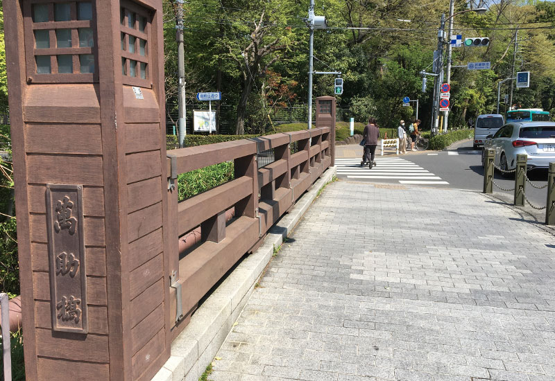 「萬助橋」江戸時代の玉川上水は「人喰い川」と言われるほど水量も多く流れが早かったそう。 吉祥寺通りの屈曲点に位置してることから三鷹のランドマークになっています