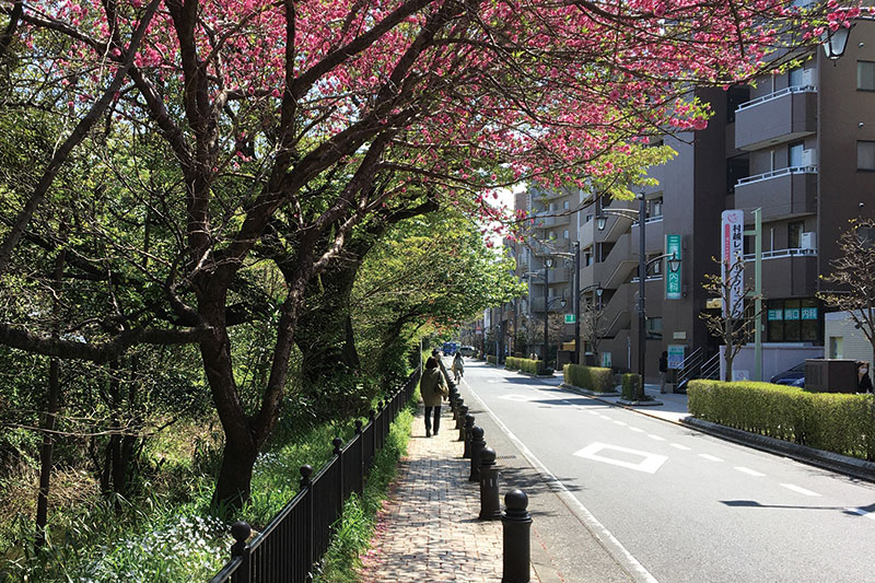 岸をふちどる桜をはじめとしたさまざまな植物は四季によってその表情を変化させ、またこの通りは景観配慮の観点から電線を地中化。夜にはガス灯風の照明になるためレトロな空気を感じられます。