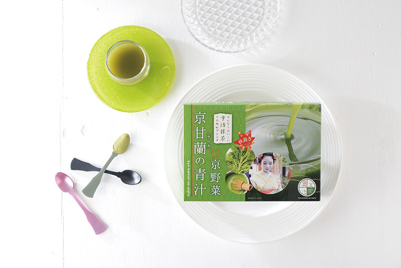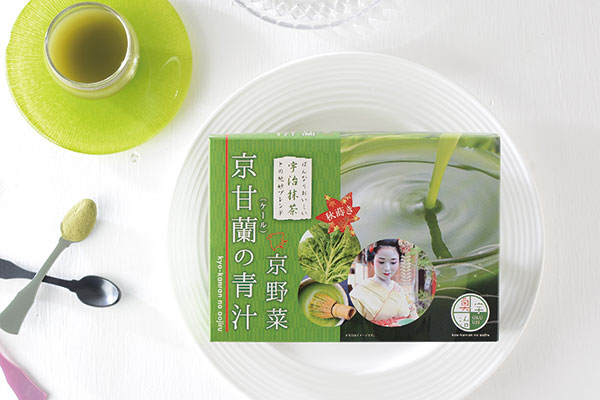 高級宇治抹茶を加えさっと水に溶ける粉末に仕上げた「京野菜京甘蘭の青汁」は、余計なものを一切加えていない、こだわり製法の無添加青汁です。