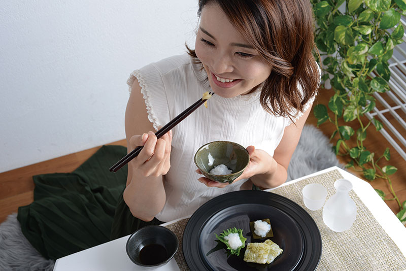 1尾ずつ丁寧に手むきで仕上げられたむき身を、解凍してそのままお刺身で頂ける「しらゆき」と、おぼろ昆布で挟んだ「おぼろづき」、北海道産昆布で挟んだ「昆布〆」の3つの味で楽しめる、人気の「白えび三種セット」がおすすめ。