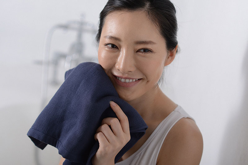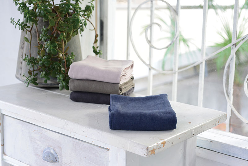 サンホーキン混紡糸を使った片面ガーゼタイプのタオルは、洗濯回数を重ねてもふわふわでやわらかな肌触りが続くお気に入りの1枚。
