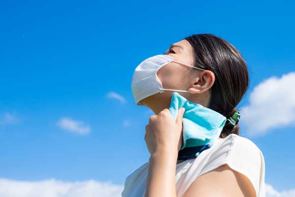 近頃は新型コロナウイルス感染を予防するため「マスクの着用」が呼びかけられていますが、これも熱中症リスクを高める原因に。