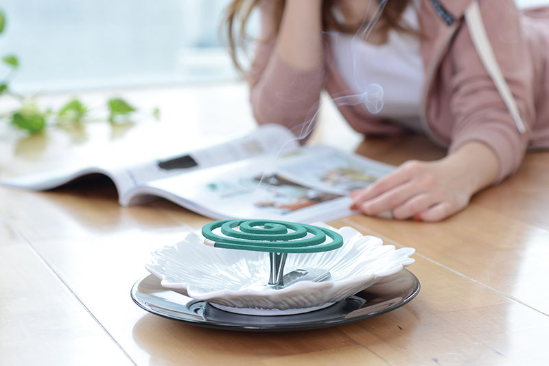 有効成分「メトフルトリン」の配合などにより、かとり線香では初めてとなる、燃焼完了後の殺虫効果の持続を実現(室内使用時で3時間)。