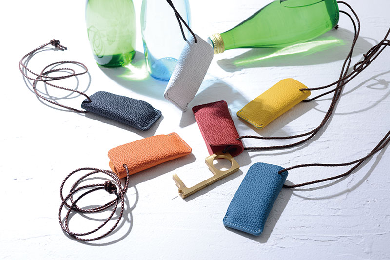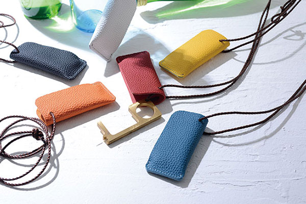 革工房piccino(ピッチーノ)の牛革製カバーがセットになっていて、首から掛けたり、バッグのチャームとしても使える、オシャレなアクセサリーへと進化した「非接触アイテム」。